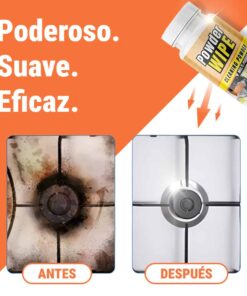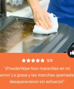 "Usé PowderWipe en mi cocina y ¡hizo maravillas! La grasa salió fácilmente sin frotar durante horas. ¡Estoy impresionada!"