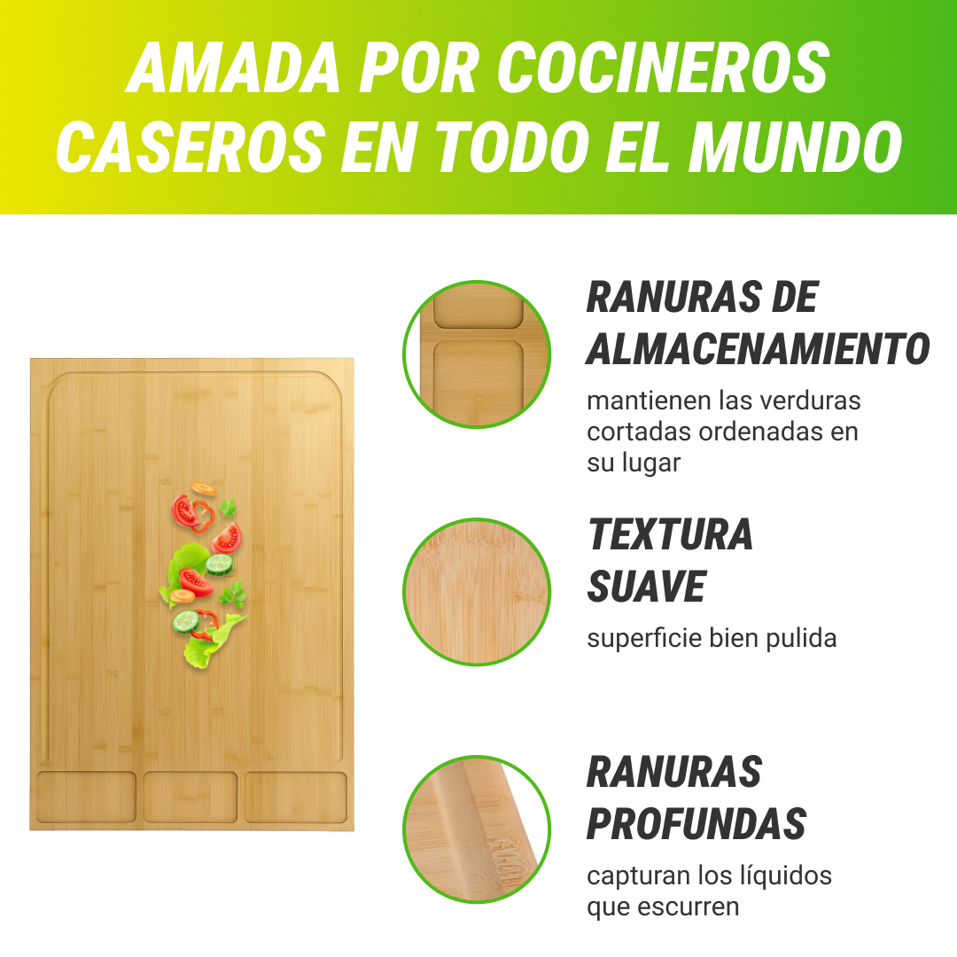 - Maestría sofisticada: La superficie lisa y plana asegura que los cuchillos no se dañen y que no haya astillas de bambú.