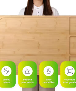 - Patas removibles: Las patas son removibles, permitiéndote usar la tabla de cortar de varias maneras.