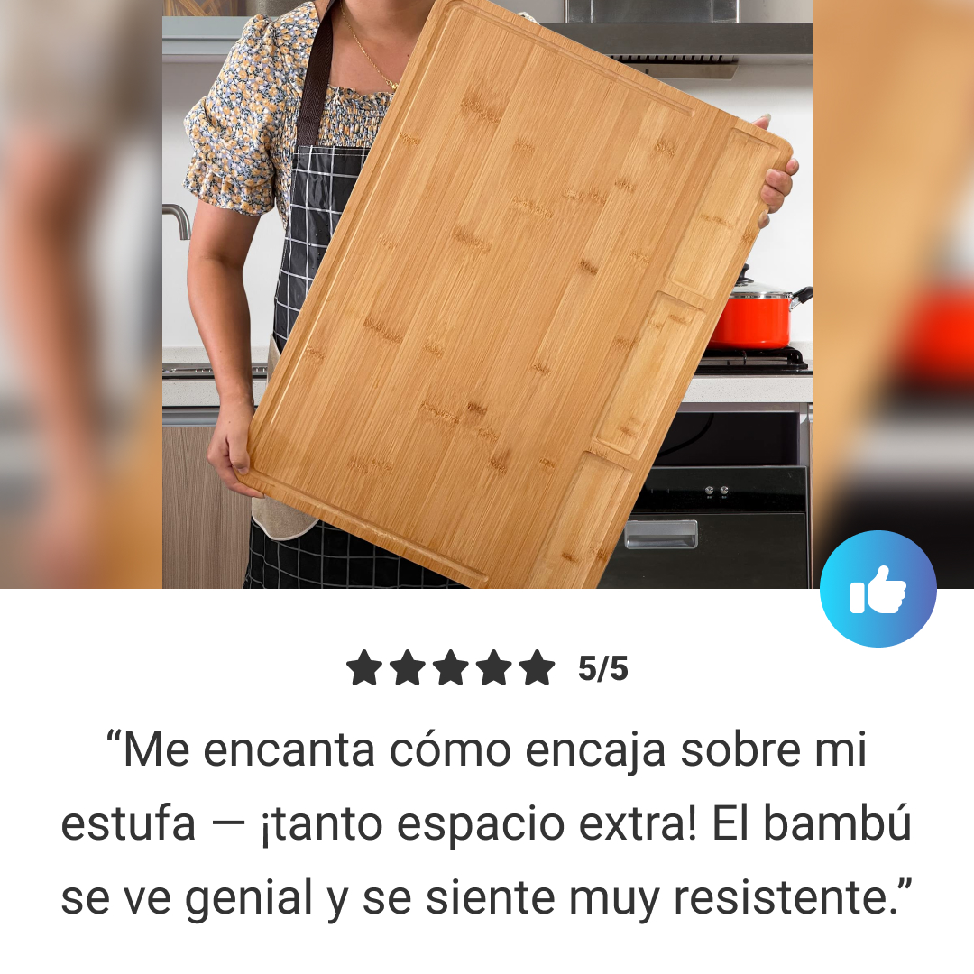 ¡Esta tabla de cortar es un cambio de juego! Me encanta la superficie grande, y las patas removibles la hacen fácil de guardar. Es perfecta para cortar objetos grandes y también puedo usarla como plato para queso. Realmente vale la pena.