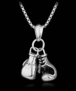 Un hermoso par de guantes de boxeo hechos a mano en un collar auténtico con un significado subyacente significativo.