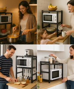 MicroRack™ transforma cada rincón de la cocina en un espacio ordenado y funcional, ofreciendo una solución sólida y ajustable para tu microondas y los accesorios de cocina.