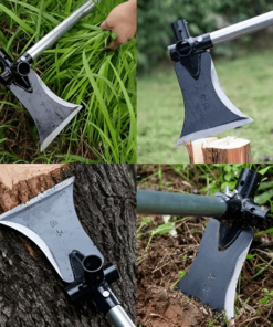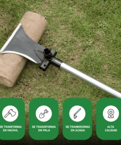 Simplemente ajustando la posición del mango, puedes transformarla en un hacha, una azada, una hoz o una pala.