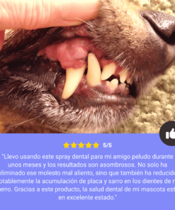 - Mantiene la salud bucal: nuestro spray dental para mascotas ayuda a eliminar la suciedad y los residuos de alimentos en la superficie de los dientes.