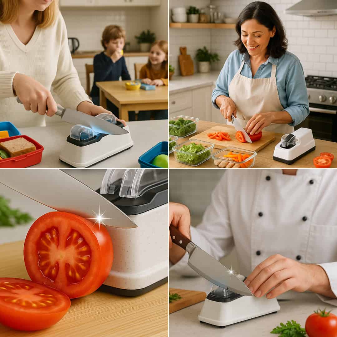 ¡Resultados impresionantes! Este afilador eléctrico es imprescindible. Mis cuchillos parecen nuevos. ¡Fantástico!