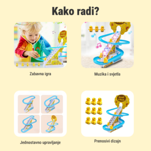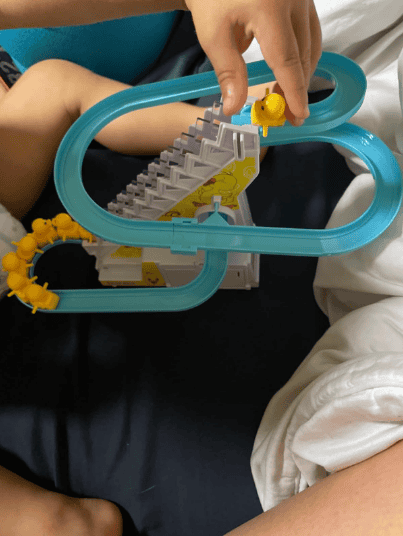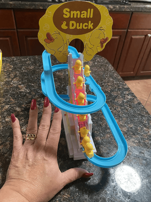 Es pequeño pero ruidoso, no hay forma de apagar la música, pero a los niños no les molesta y les encanta ver a los patos subir y deslizarse hacia abajo.